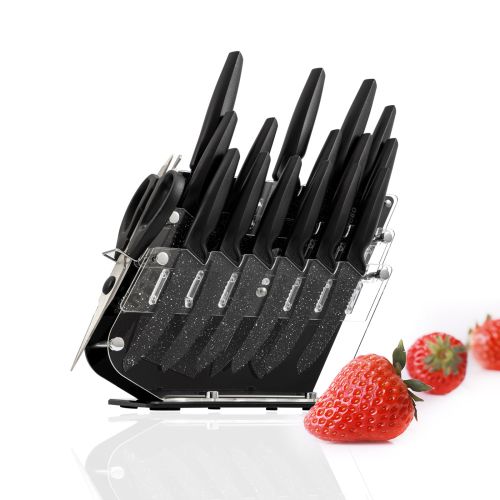 Marble Look Blade 17pc Kitchen Knife Block Set Black