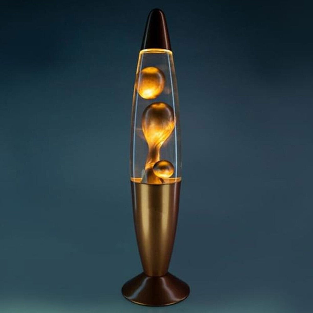 An expertly crafted Metallic Peace Lava Lamp in luxurious gold. Watch mesmerizing ripples and floating motion from the stunning metallic lava, adding ambience to any room. Classic rocket-shaped design makes it a perfect statement piece. Experience relaxation and peacefulness with this elegant lava lamp.