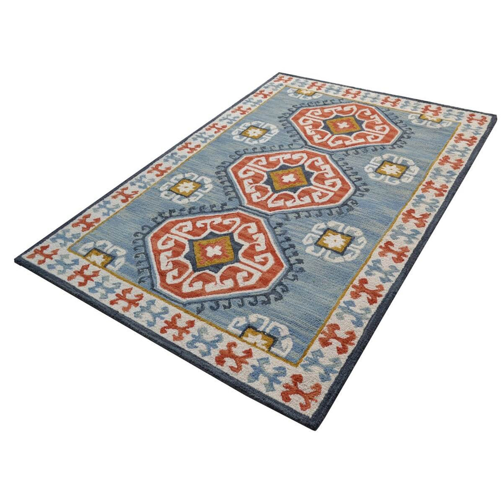 Unlock a world of vibrant pattern and rich texture with the Milano Designer Handmade Woolen Rug. Featuring sea blue and orange dominating design, this handmade rug will energize any living space with its bold style and risk-taking spirit. Dare to be different—shop now!