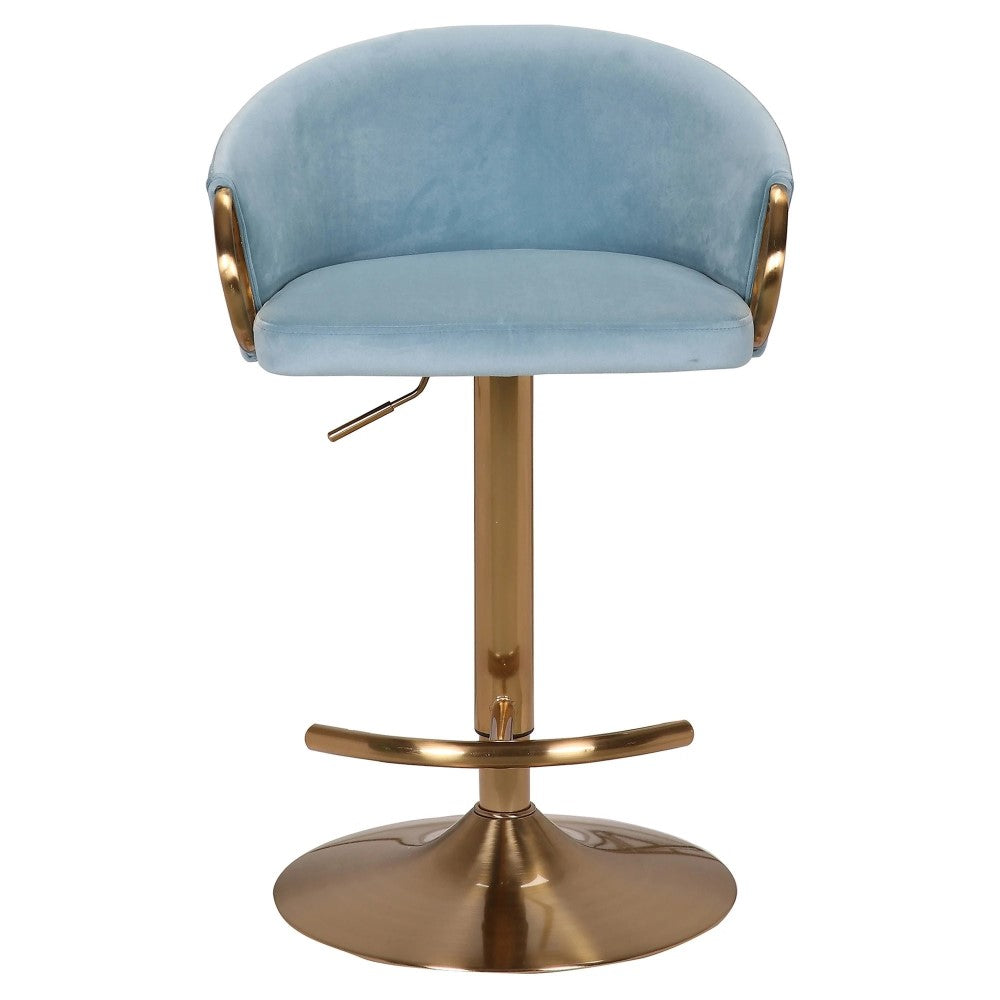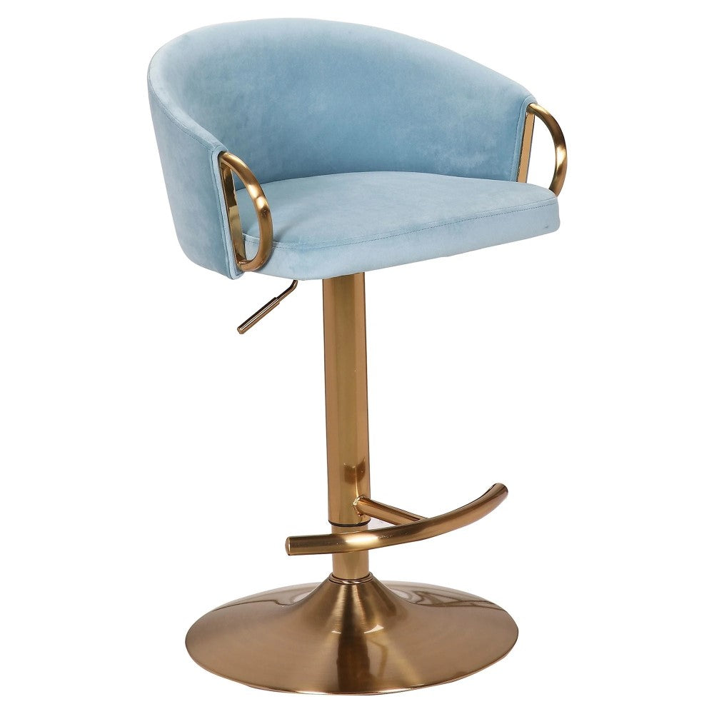 Upgrade your kitchen or bar area with the sophisticated Miller Brass & Blue Gas Lift Barstool. With its sleek gas lift design, this stool effortlessly adjusts to your desired height and adds a touch of luxurious brass chrome to your space. Experience supreme comfort and impeccable style with this must-have piece.