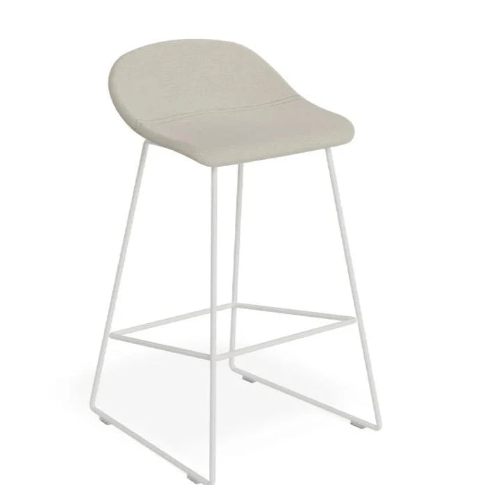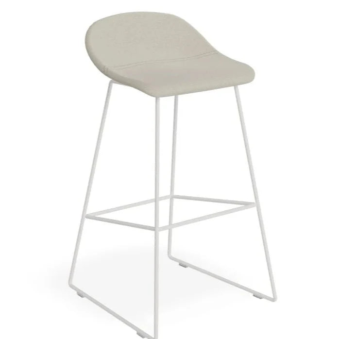 The Modern White Steel Grey Seated High Stool offers a touch of sophistication and warmth to any bar or dining area. With a sleek white frame and easy-to-maintain fabric, this stool is both stylish and practical. Available in 2 sizes to fit your needs.