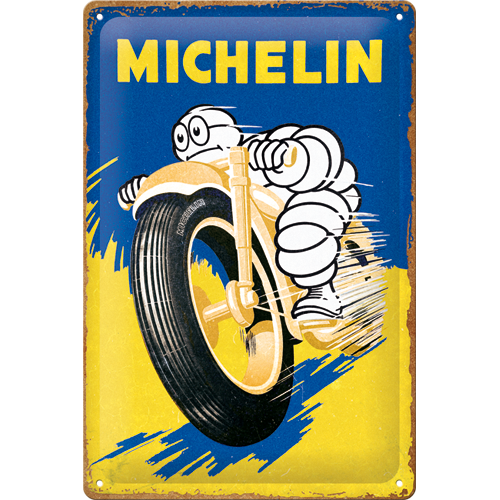 This metal sign board features the iconic Motorcycle Bibendum design for all motorcycle enthusiasts. Made with durable material, it's perfect for adding a touch of personality to any garage, workshop, or man cave. Show off your love for the open road and Michelin with this unique, high-quality sign board.