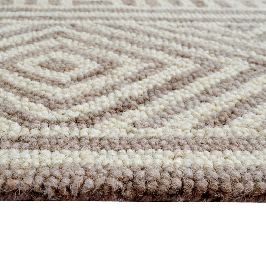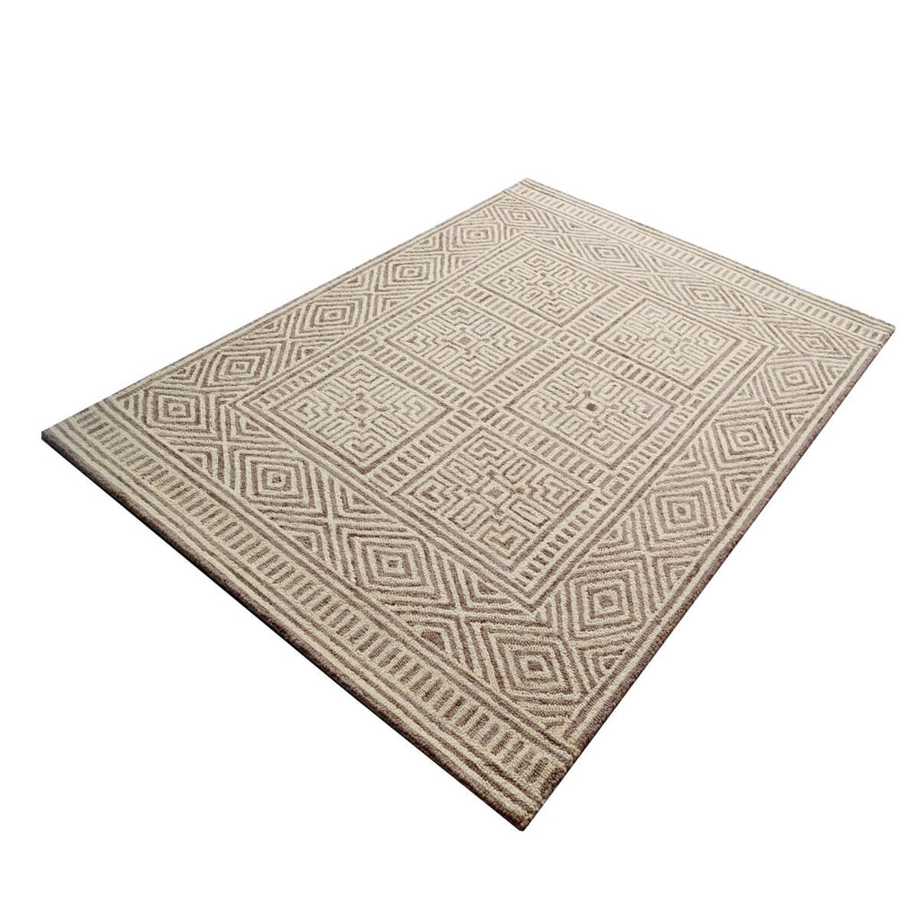 Embrace your daring side with this bold, multicolored woolen rug. Adorned with a unique diamond and square design, it boldly stands out with a white and brown contrast. Dare to make a statement with Multi Design Handmade Woolen Rug!