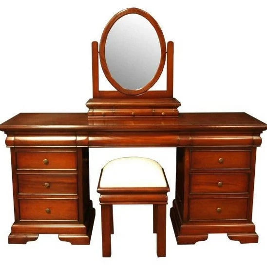 Expertly designed for both functionality and style, the Mystique Hidden Drawer Dressing Table in Light Mahogany offers a sleek and sophisticated addition to any bedroom. With its hidden drawer, this dressing table provides ample storage space while maintaining a clean and minimalist appearance.
