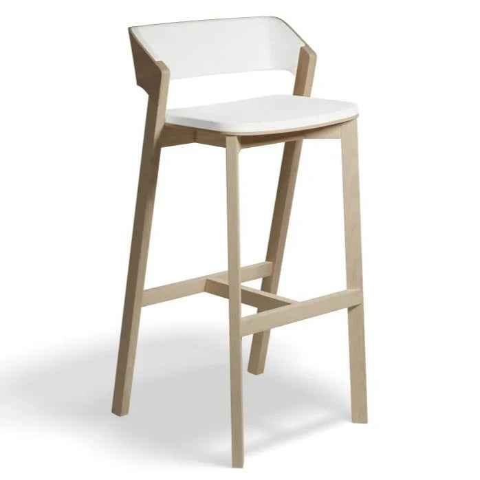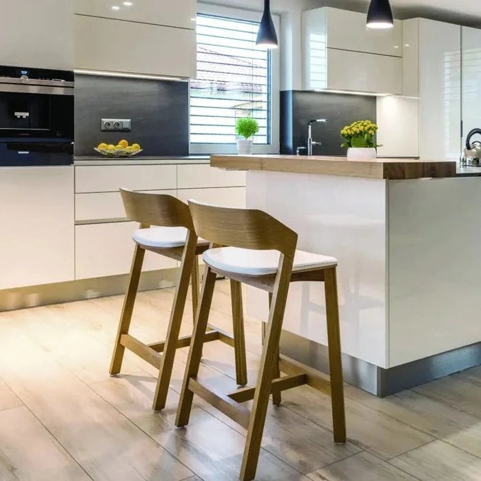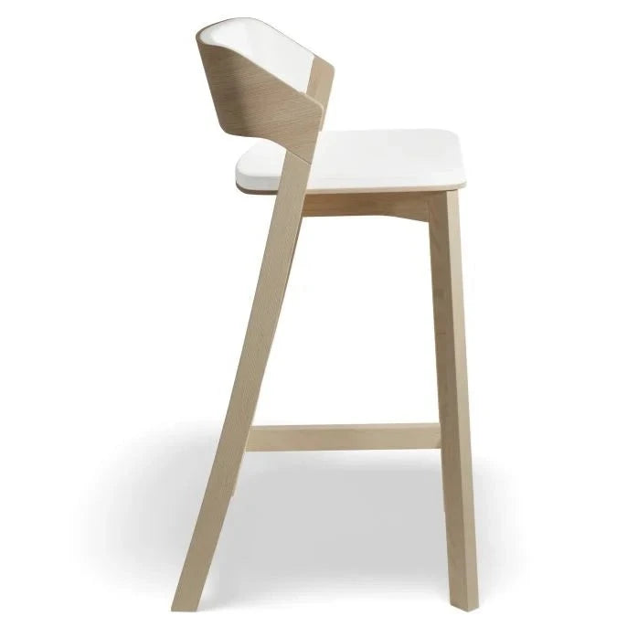 The Natural Oak Shade White Padded High Stool effortlessly combines style and comfort. Its sleek design and gentle curved seat provide both ergonomic support and visual appeal. Thanks to the thoughtfully tapered legs and footrest, this stool offers stability and making it the perfect addition to any space.