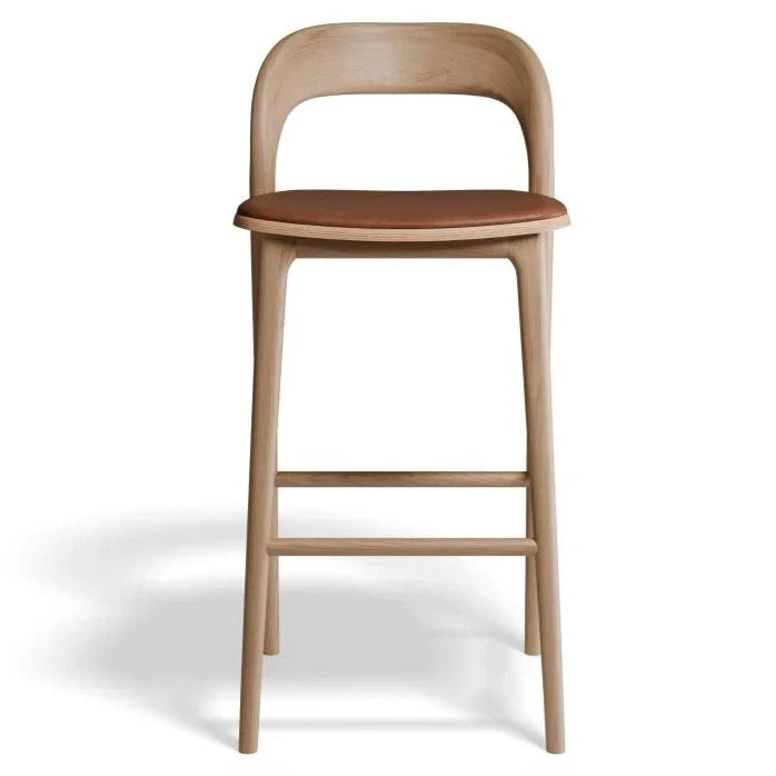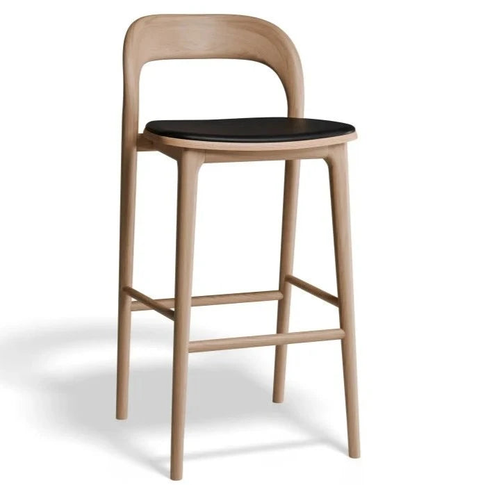 The Natural Woodland Padded High Stool showcases the finest natural Ash wood, highlighting its unique grain patterns for a warm and inviting appearance. Choose from 4 different colors of faux leather, all expertly crafted to enhance the stool's natural beauty while providing lasting comfort and style.