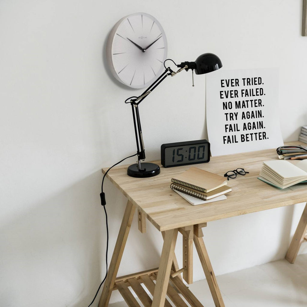 Be bold and take a risk with the NeXtime 2 Seconds Wall Clock! Find your optical illusion with its modern monochrome design on the dial and linear minute marking. Choose between a black or white face with the opposite color hands for a striking effect. The dome-shaped glass cover ensures clock protection and a unique visual impact. Take the plunge with momentary moments and a silent, non-ticking timepiece.