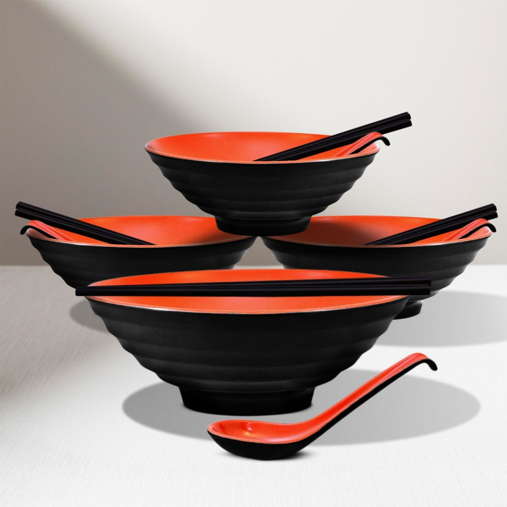 - 4x Sets Dishware with Matching Spoon and Chopsticks (12 Pieces)