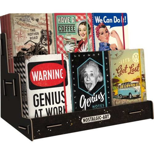 This Nostalgic-Art Notebook Display is a must-have for any retro enthusiast. Made of sturdy wood, it not only showcases your favorite nostalgic designs, but also keeps your notebooks organized. With its durable construction and timeless design, this display is the perfect addition to any workspace.