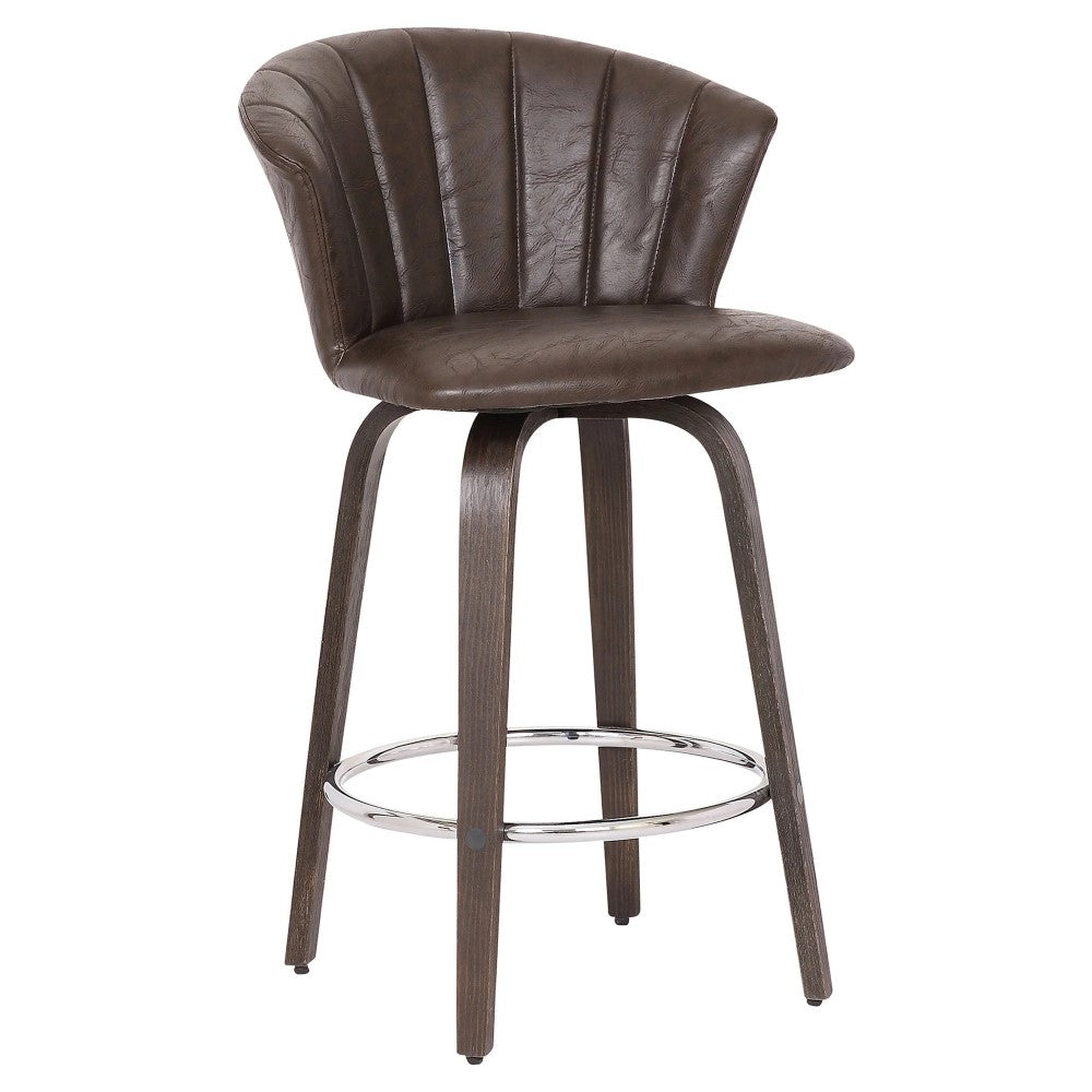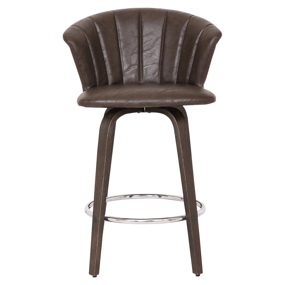 Introducing the Oakland Wingback Swivel Barstool Brown. Enjoy your favorite beverage in style with this elegant barstool. Featuring a luxurious faux leather seat cushion and a fixed frame for a sleek look, this chair is perfect for any bar or hospitality setting. Elevate your space with this sophisticated and captivating piece.
