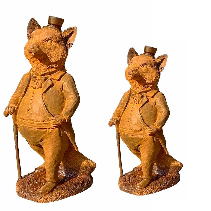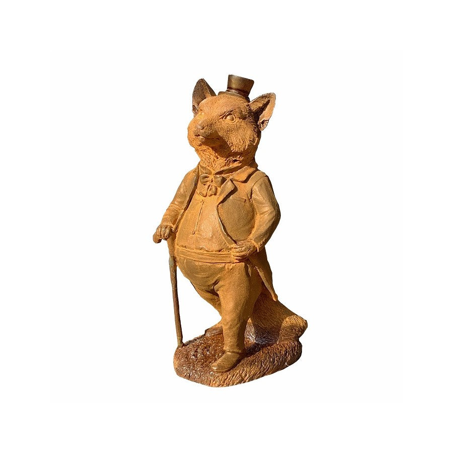 Take a bold step to the wild side with this Outdoor Cast Iron Dapper Fox Statue. With its stylish hat and walking stick, this fox is ready to embark on your outdoor journey - available in two sizes to suit your needs! Make a statement and show the world your adventurous spirit!