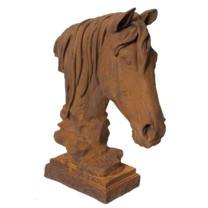 Bring the power of an equestrian to your garden with this rustic Outdoor Cast Iron Horse Head Down Garden Statue. Adorned with intricate details and a timeless rusty finish, this robust statue is sure to capture the attention of visitors and inspire your outdoor space!
