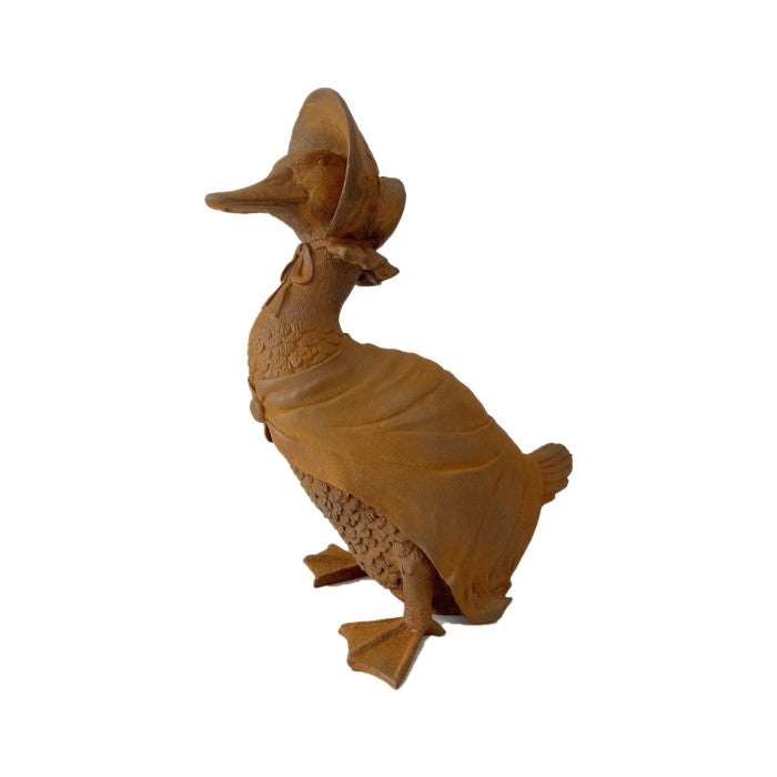 Discover the perfect outdoor accent with this stunning Cast Iron Mother Goose Garden Statue. Featuring a Goose with apron and head wrapped, this statue will bring character and charm to your garden. Make a bold statement and show off your love of the outdoors!