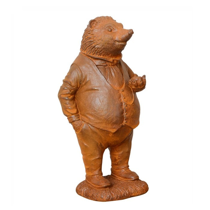 Bring some fun and whimsy to your outdoor space with the Outdoor Cast Iron Porcupine Statue! This unique statue stands ready to join your adventure, one hand ready with food and the other tucked away in its pocket. Let your imagination run wild with this porcupine ready to explore!