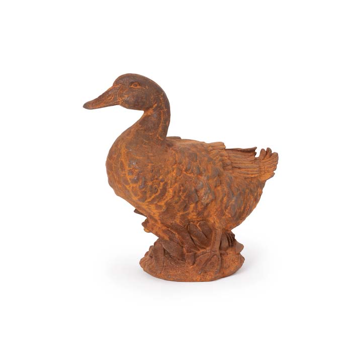 Experience adventure with this rustic Outdoor Cast Iron Swimming Duck Garden Statue! Crafted with intricate details, this Duck stands tall on a base, inviting you to take a risk and explore the great outdoors. Step out of your comfort zone and embark on a daring journey!