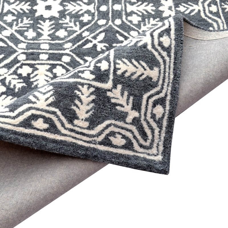 Patchwork Design Woolen Rug - Charcoal (Available in 3 Sizes)