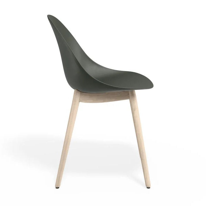 This Pebble Seat Natural Beechwood Base Chair in Olive Green combines modern design with natural materials for an eco-friendly and stylish seating option. The unique pebble-shaped seat provides ergonomic support while the beechwood base adds durability and an earthy aesthetic.