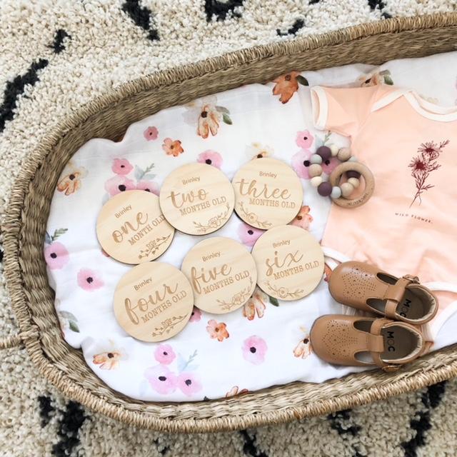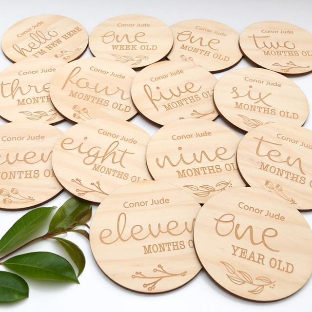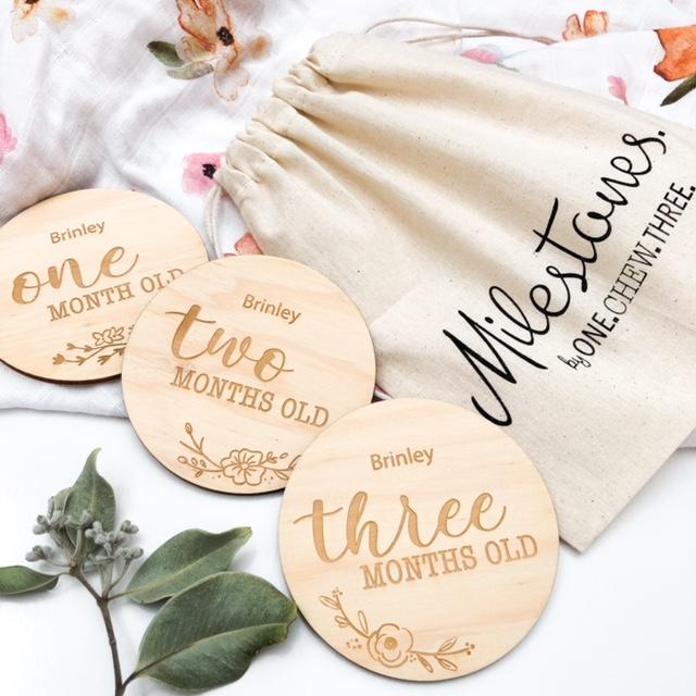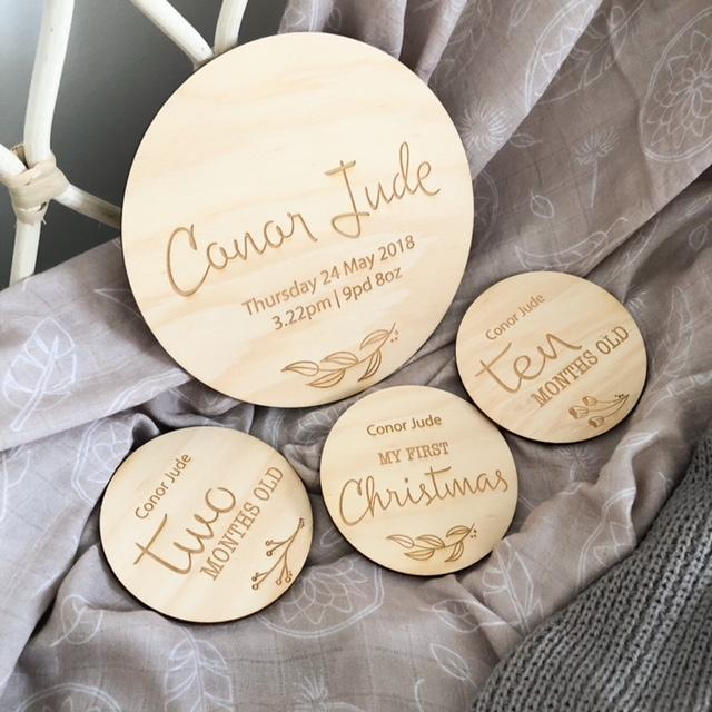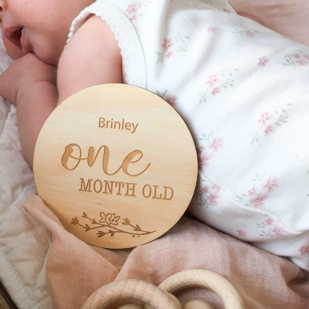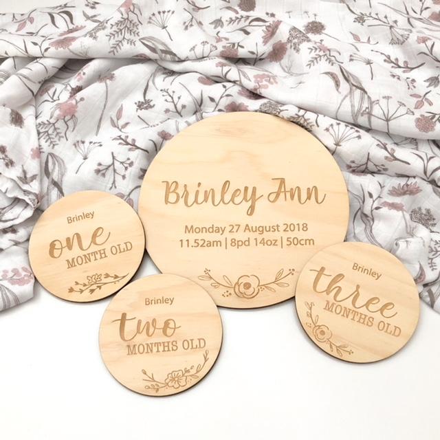 Monthly Age Milestones (12 plaques) - from one month to one year. Perfect to personalise once babe is born with enough time to receive them before the first milestone ie. one month.