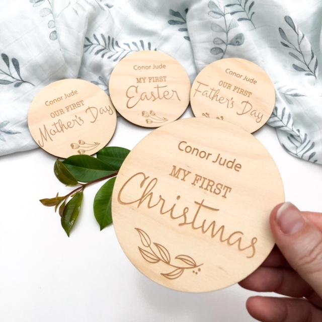 Special Firsts (4 plaques) - includes first Easter, Mother's Day, Father's Day and Christmas. Perfect to personalise and celebrate those very first special occasions together.