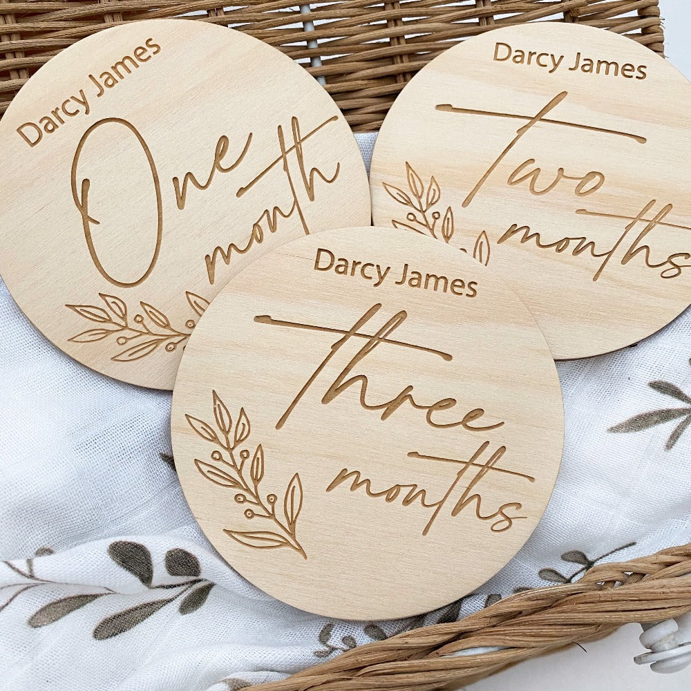 Monthly Age Milestones (12 plaques) - from one month to one year. Perfect to personalise once babe is born with enough time to receive them before the first milestone ie. one month.
