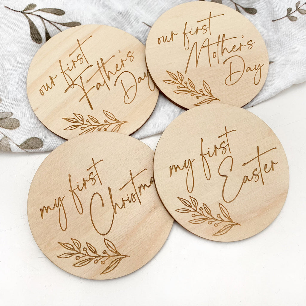 Special Firsts (4 plaques) - includes first Easter, Mother's Day, Father's Day and Christmas. Perfect to personalise and celebrate those very first special occasions together.