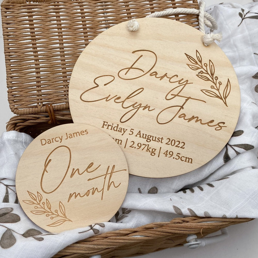 Our timber plaques are made from extra thick 4mm, quality Australian produced plantation plywood - as a natural product, please allow variances in the grain from the images displayed. They're lovingly packaged in a reusable 'Milestones' calico bag - use to store your plaque plus any other milestone treasures you collect as your babe grows. All pieces are lightly hand-sanded to ensure smooth edges.