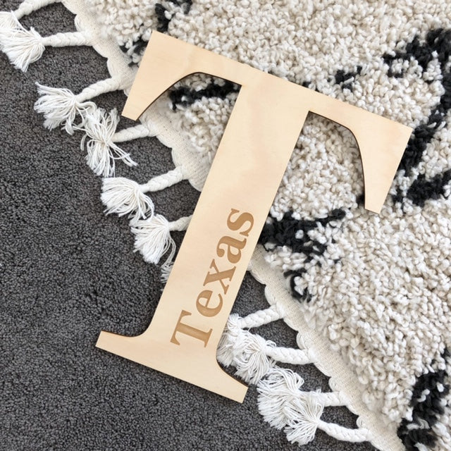 Elevate your nursery or kids room with our Personalised Name Initials Timber Wall Plaque. Perfect for cots, beds, desks, or as a door sign, this extra large plaque makes a statement. Personalize with your child's name and choose from bold or cursive font. Add a touch of charm and character to their space.