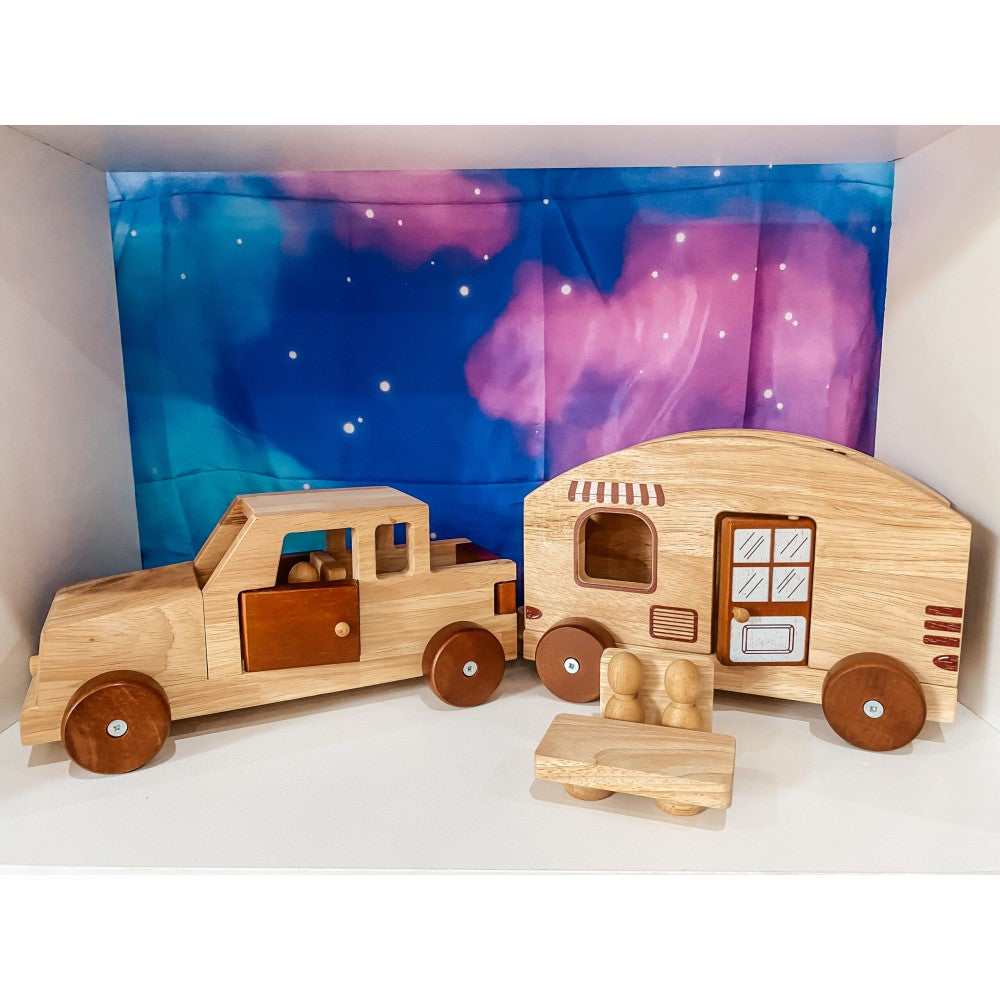 This Playtime Wooden Miniature Camper Van is the perfect toy for imaginative play. Crafted with high-quality wood, this camper van features a sturdy design and intricate details. Inspire your child's creativity and motor skills with this charming miniature camper van.