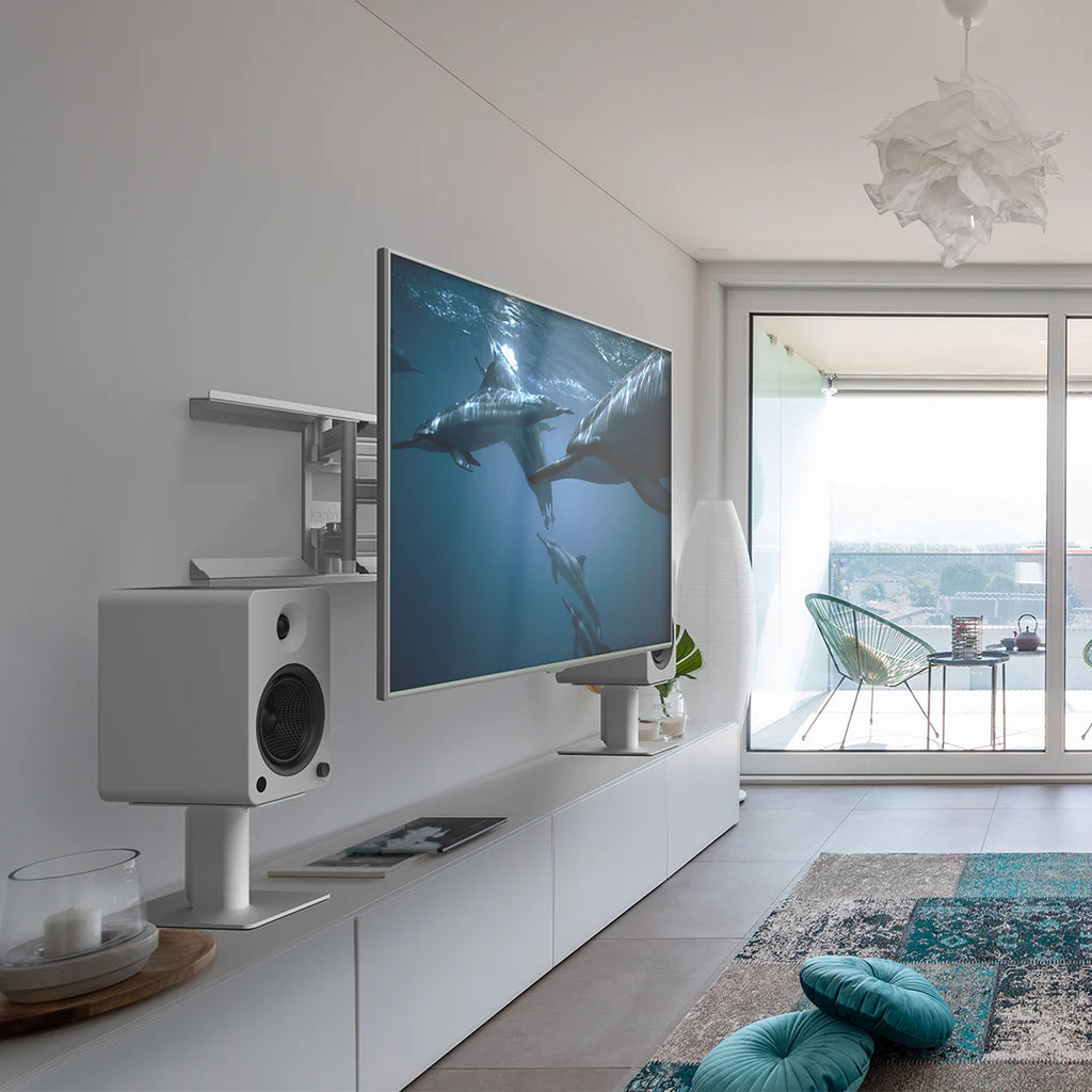 These Powered Bookshelf Speakers in sleek white are equipped with Bluetooth technology for easy wireless connectivity. Enjoy high-quality sound with powerful amplification and precise audio reproduction. Upgrade your home audio system and elevate your listening experience with these expertly crafted speakers.