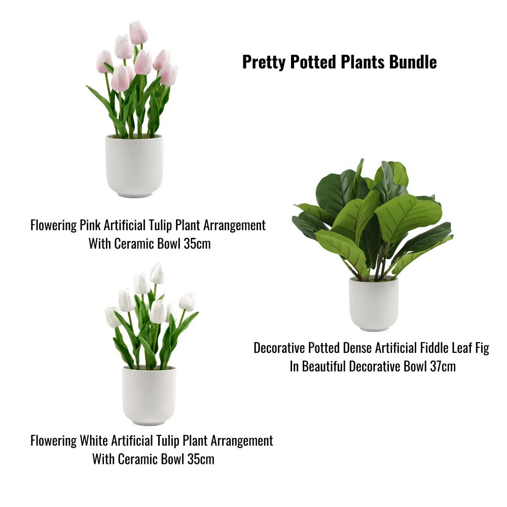 Upgrade your home decor with our Pretty Potted Plants Bundle - Set of 3. Each plant is hand-potted with care, bringing a touch of nature into your living space. These low-maintenance plants add a pop of color and freshness to any room. Perfect for those looking to add a little green to their home.