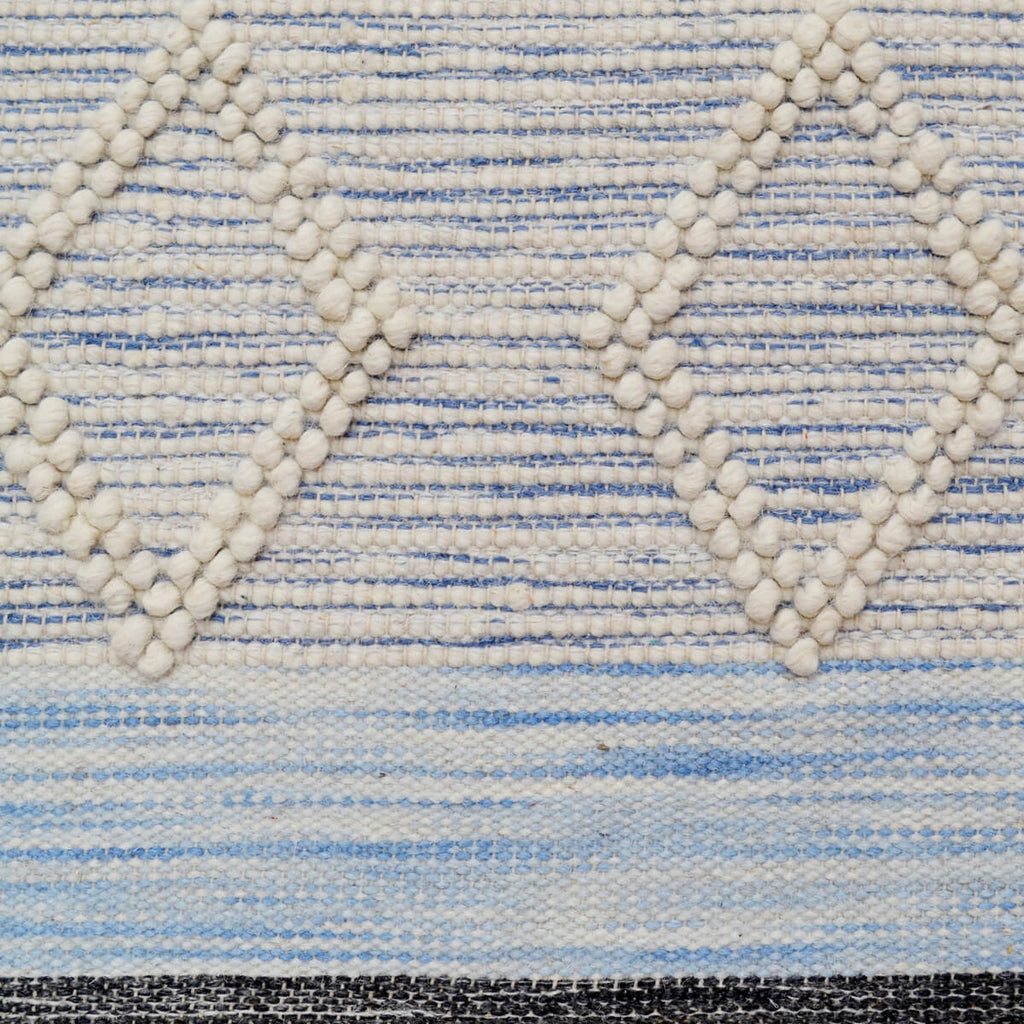 Feel the adventure of interior decorating with the Radiance Handmade Woollen Rug in Denim! Carbonate your living space with this multi-colored rug, featuring a striking denim base and diamond designs. Choose from four sizes to get your perfect fit. Go Bold!