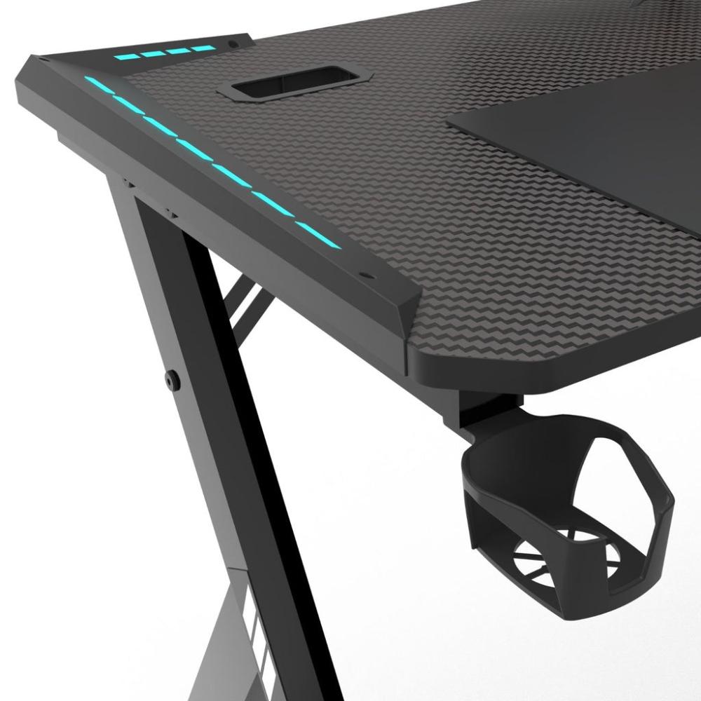 - Material: Carbon Fiber Texture Surface + MDF, Powder Coated Steel Frame, ABS Plastic RGB Desktop Shell
