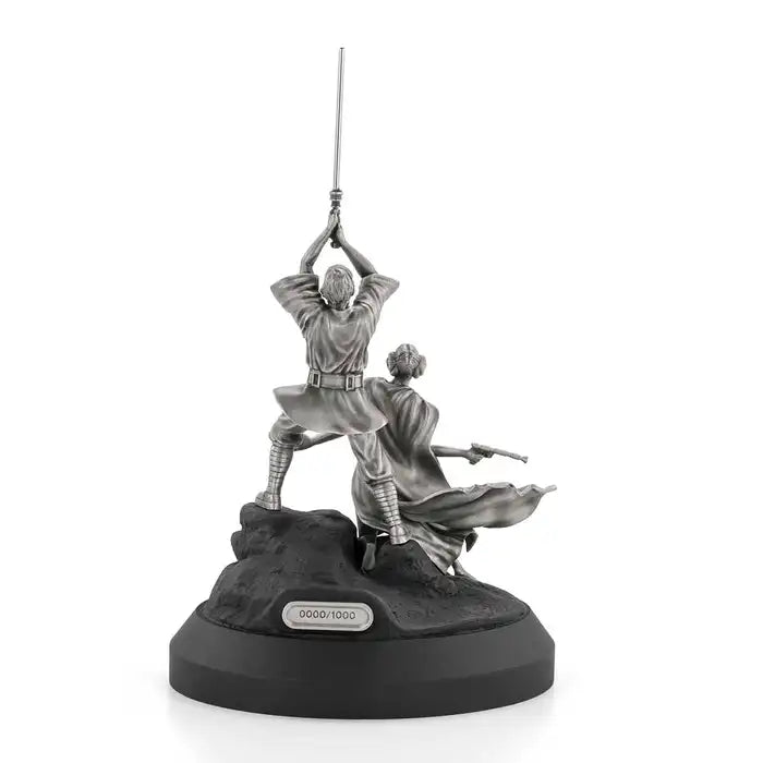 Experience the action and adventure of Star Wars: A New Hope with this stunning 3D pewter diorama. Watch as Luke Skywalker and Princess Leia bravely face peril, while C-3PO and R2-D2 look on. With an independent backdrop and intricate details, this diorama captures the epic battle against the Death Star.
