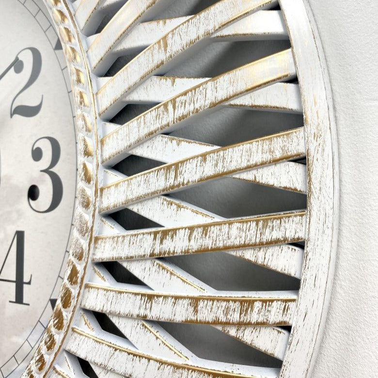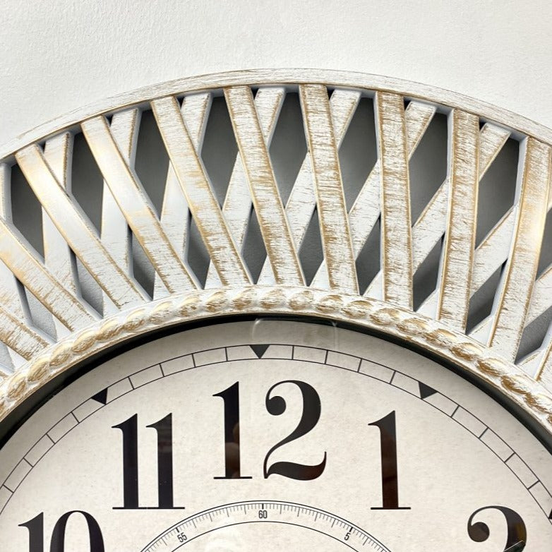 This Rustic Elegance Large Art Frame Wall Clock boasts a 61cm diameter and a stylish, vintage-inspired design. Crafted with high-quality materials, this clock not only functions as a timepiece but also adds a touch of elegance to any room. A perfect addition for those seeking a unique decorative piece.