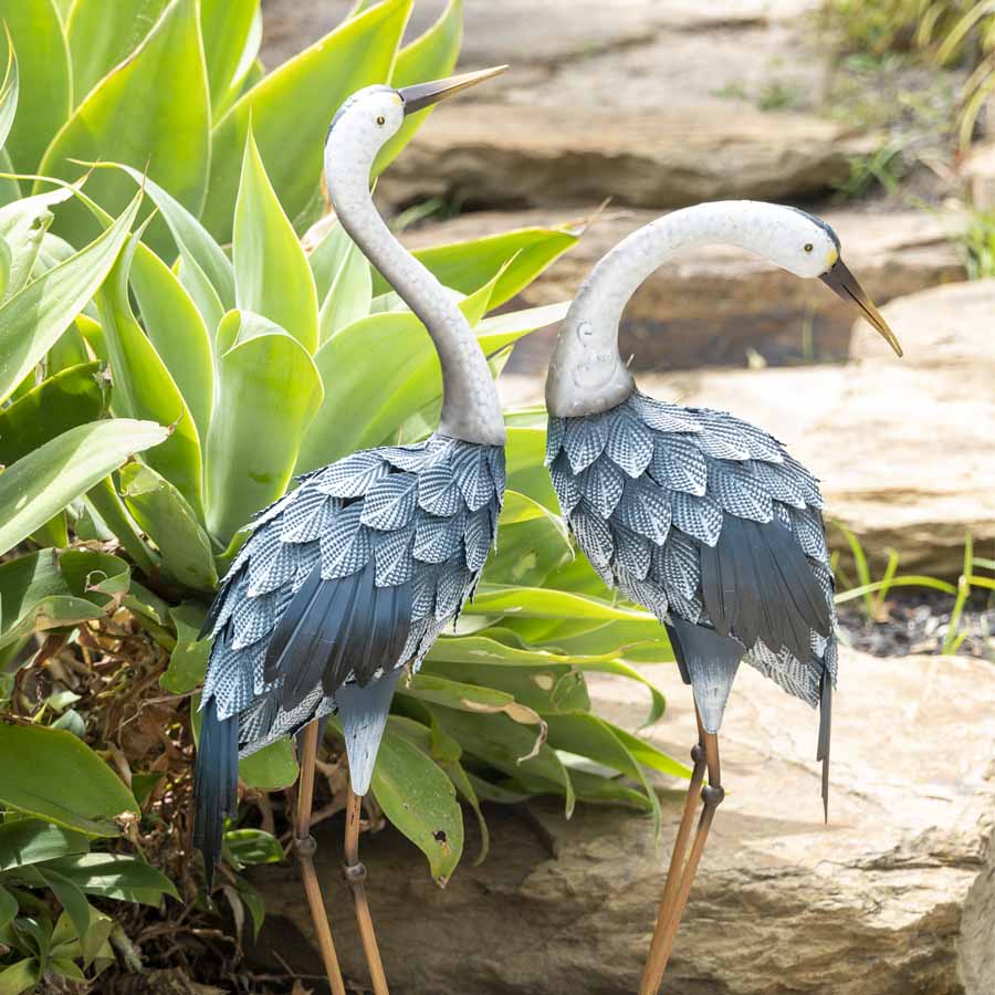 Add a touch of elegance to your garden with our Set of 2 Garden Decor Metal Asst Blue Cranes. Handcrafted with quality metal, these stunning cranes feature intricate details and a beautiful blue finish. Perfect for adding a charming and unique element to your outdoor space.