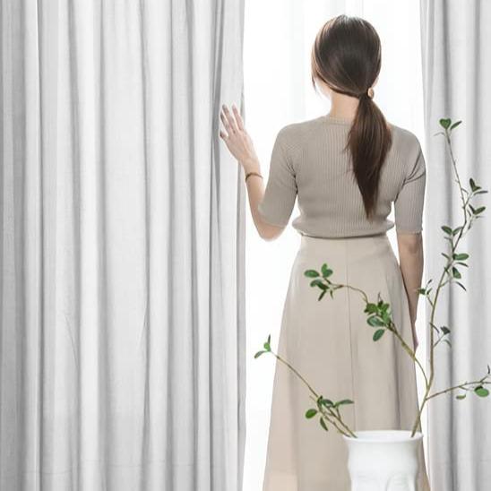 - 1x Natural Linen Blended Curtains (Set of 2, W132cm x D274cm, Light Grey)
