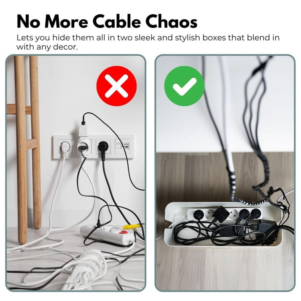 Comes with 2 cable management boxes in different sizes to accommodate various needs, ensuring a tidy and organized space.