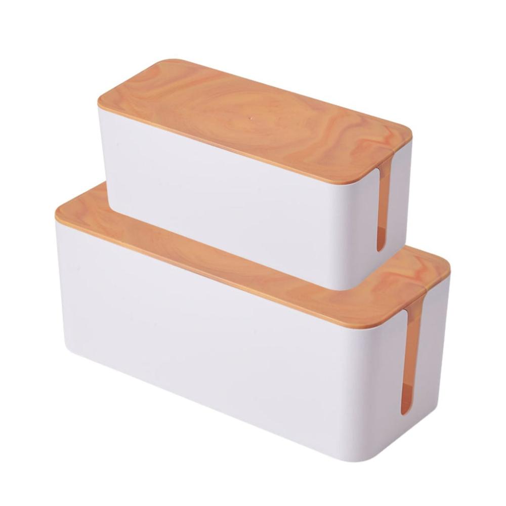 The boxes come with customized bamboo lids that add a touch of natural elegance to your workspace. Whether you place them on your desk or on the floor, they will make your cables look like they belong there. Plus, they have two cable openings on each side for easy access and organization. -