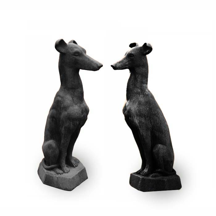 Let these two charming cast iron greyhounds lead your outdoor decorating goals! Black and weathered, these statues will add a touch of adventure to your front porch or garden. Come out of your comfort zone and make a statement with these stylish outdoor sculptures!