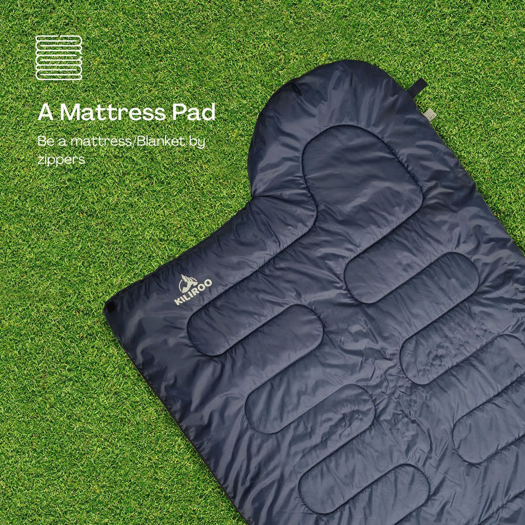 Our sleeping bag has full length dual zippers that let you open and close it with ease. You can also unzip it all the way and use it as a blanket or a quilt, if you like. The choice is yours, no strings attached!