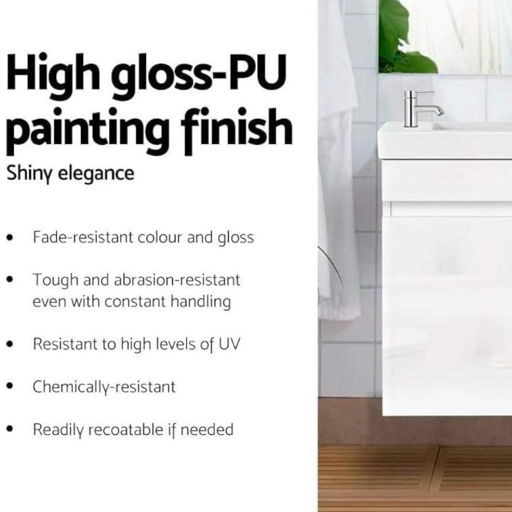 - Sturdy MDF board with glossy paint and stone basin with highly resistant to staches, water leak and bacteria growth