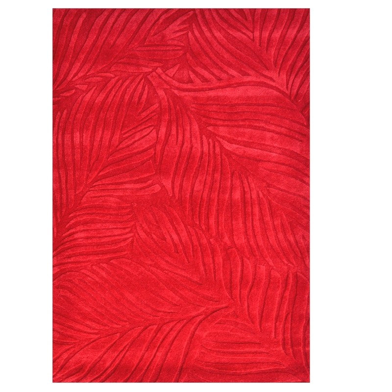 Turn your space into a boutique-quality home with this handmade woolen rug. Featuring an intricate leafy pattern and gleaming red hue, its luxurious texture will bring a touch of elegance to any room. Go bold and make a statement with this modern classic.