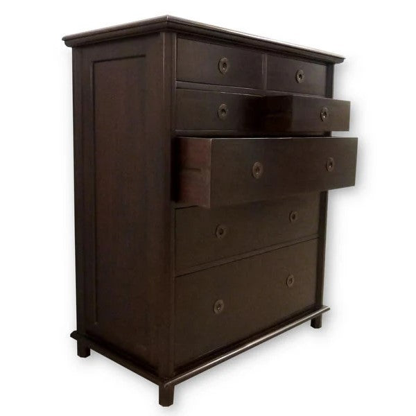Introduce elegance and sophistication to your bedroom with our Timeless Design Pencil Chest of Drawers in Dark Mahogany. Crafted with quality materials, this classic piece offers timeless style and ample storage space for all your belongings. Elevate your room with this stunning and functional addition.