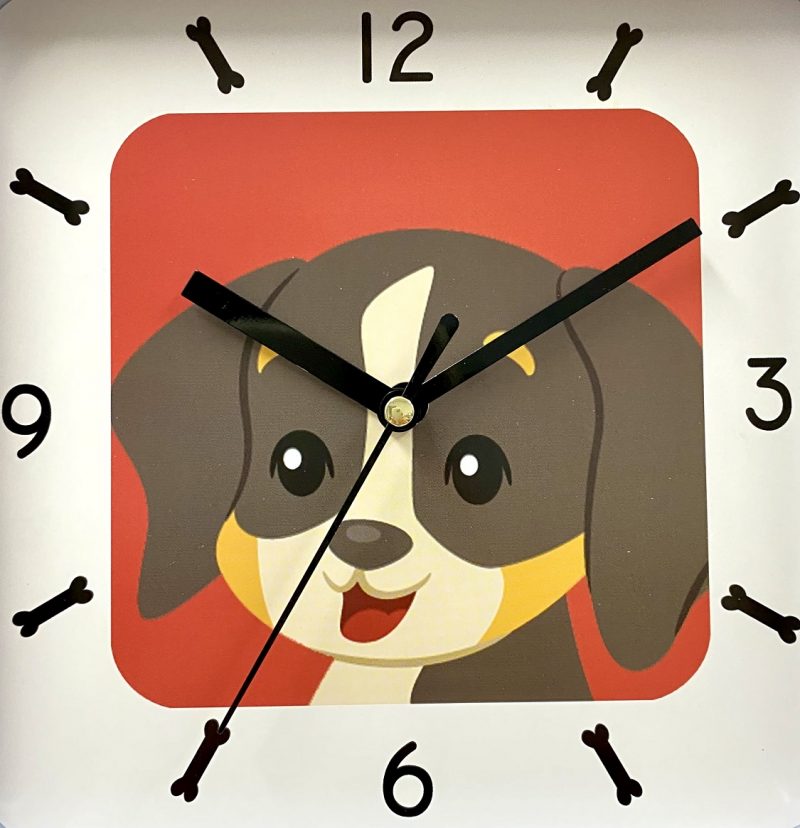 This Tiny Square Doggy Wall Clock is the perfect addition to any dog lover's home. Available in two charming colors, this clock features a playful dog design and measures 18.5cms. Keep track of time in style while showcasing your love for dogs with this adorable wall clock.