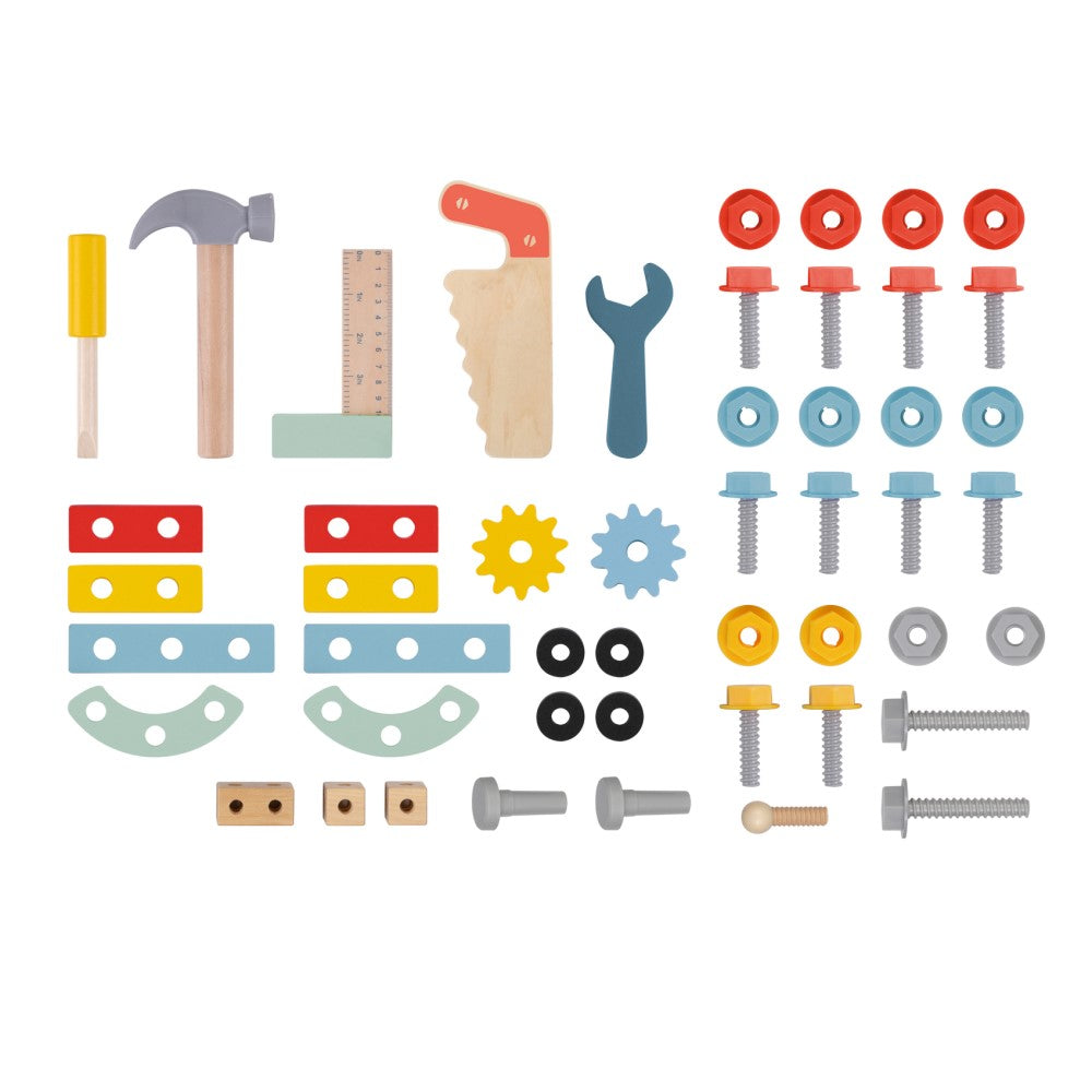 - Kit contains - 5 Tools Included: Hammer, spanner, set square, screwdriver, and saw Interactive Elements: Moving cogs and a mini maze