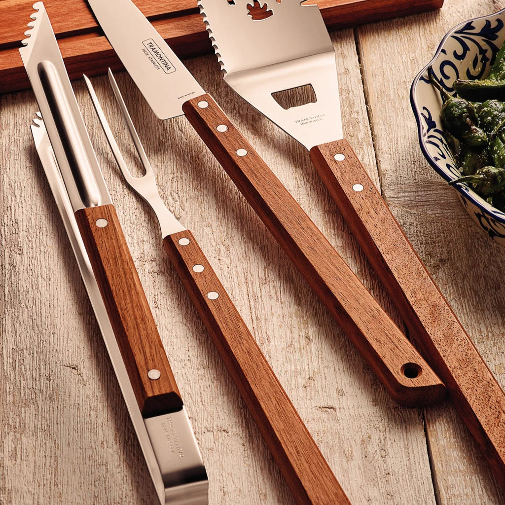 Expertly turn and handle food on the grill with the Tramontina Barbecue Tongs. The sturdy wooden handle and long 37cm length provide a comfortable grip and safe distance from the heat. Designed for precision and durability, these tongs make grilling easier and more enjoyable.