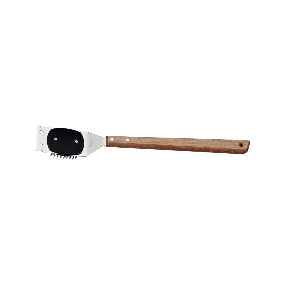 This Tramontina Churrasco Grill Brush with Wood Handle is 41.7cms long and designed for efficient cleaning of your grill. The sturdy wood handle provides a comfortable grip and the durable bristles effectively remove residue, ensuring a spotless grill for your next barbecue.
