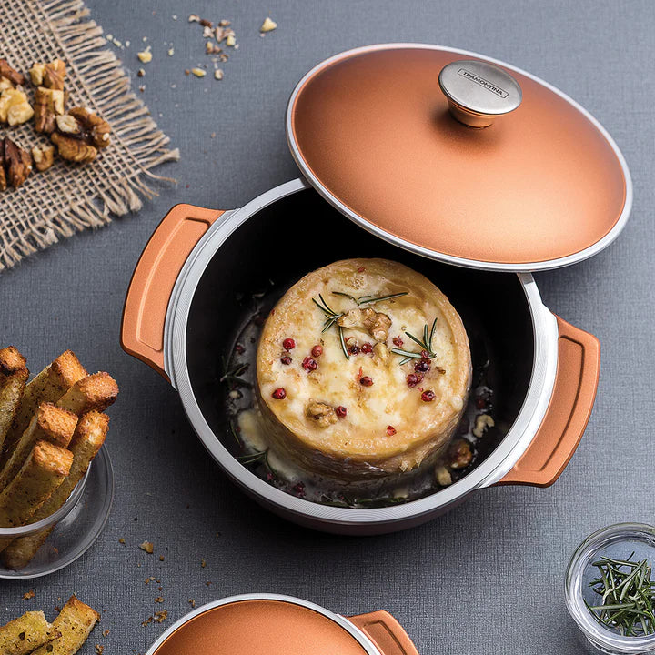 Experience elegance, sophistication, and functionality with Tramontina Lyon's Golden Casserole. Made of forged aluminum, it features a Starflon High Performance nonstick coating for effortless cooking and cleaning. With a 3.7 L capacity and stainless steel knob, it's perfect for all occasions.