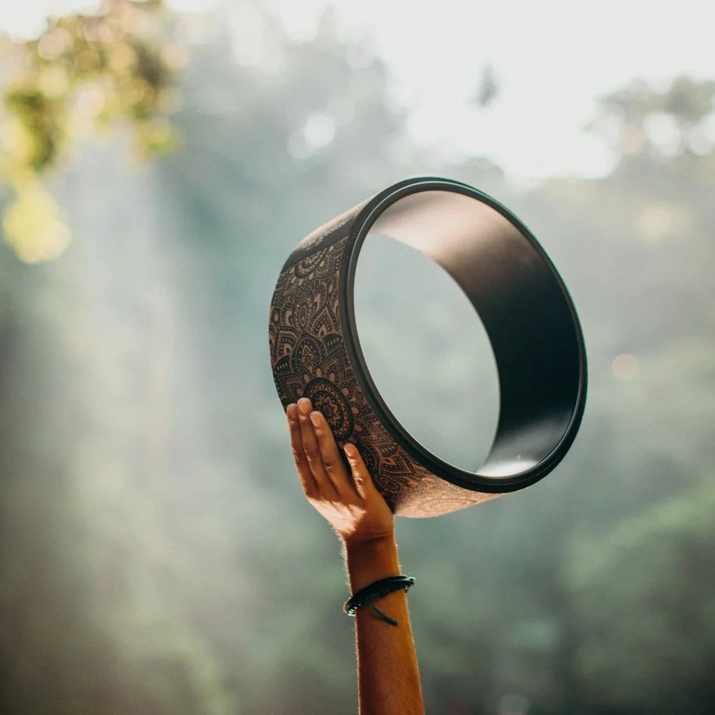 Experience the ultimate balance and strength with the True Balance Lab Combo Yoga Wheel in cork material. Featuring a beautiful mandala design in black, this wheel provides support and traction for deeper poses, aiding in improved flexibility and stability. Elevate your practice today.