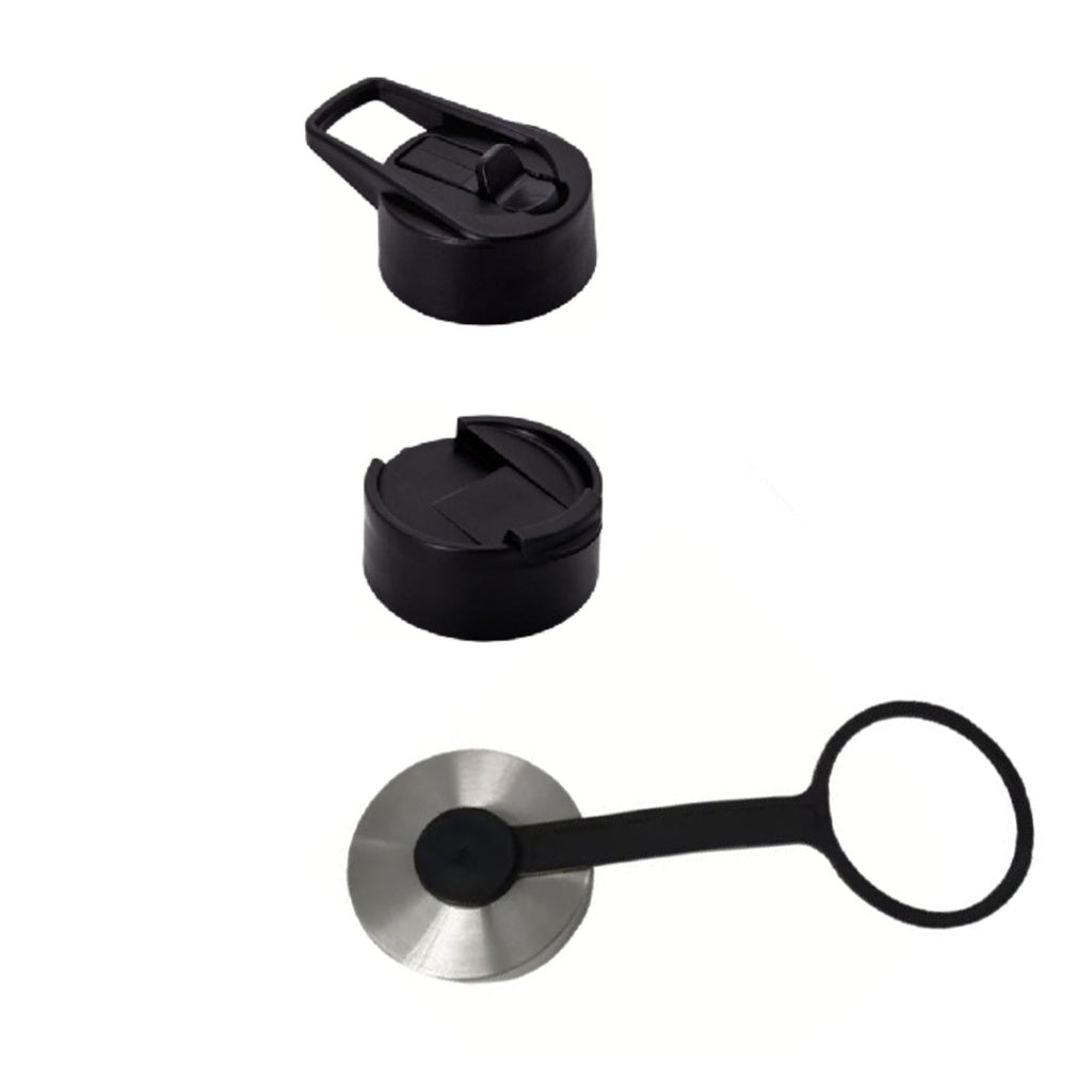 This bottle has 3 lids for different activities. The sports lid/straw is great for workouts and has a carabiner. The coffee lid prevents burns and the strap lid is perfect for outdoor activities. -